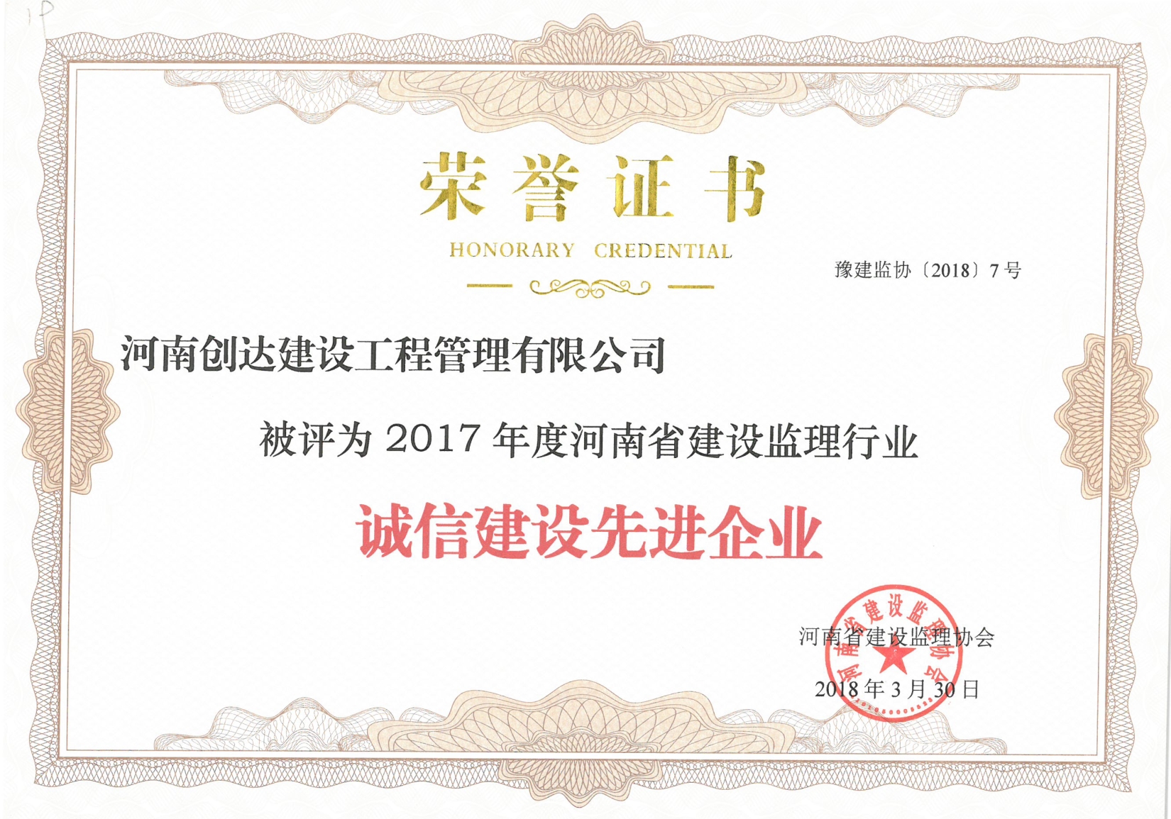 2017年度監(jiān)理行業(yè)誠信建設(shè)先進(jìn)企業(yè)