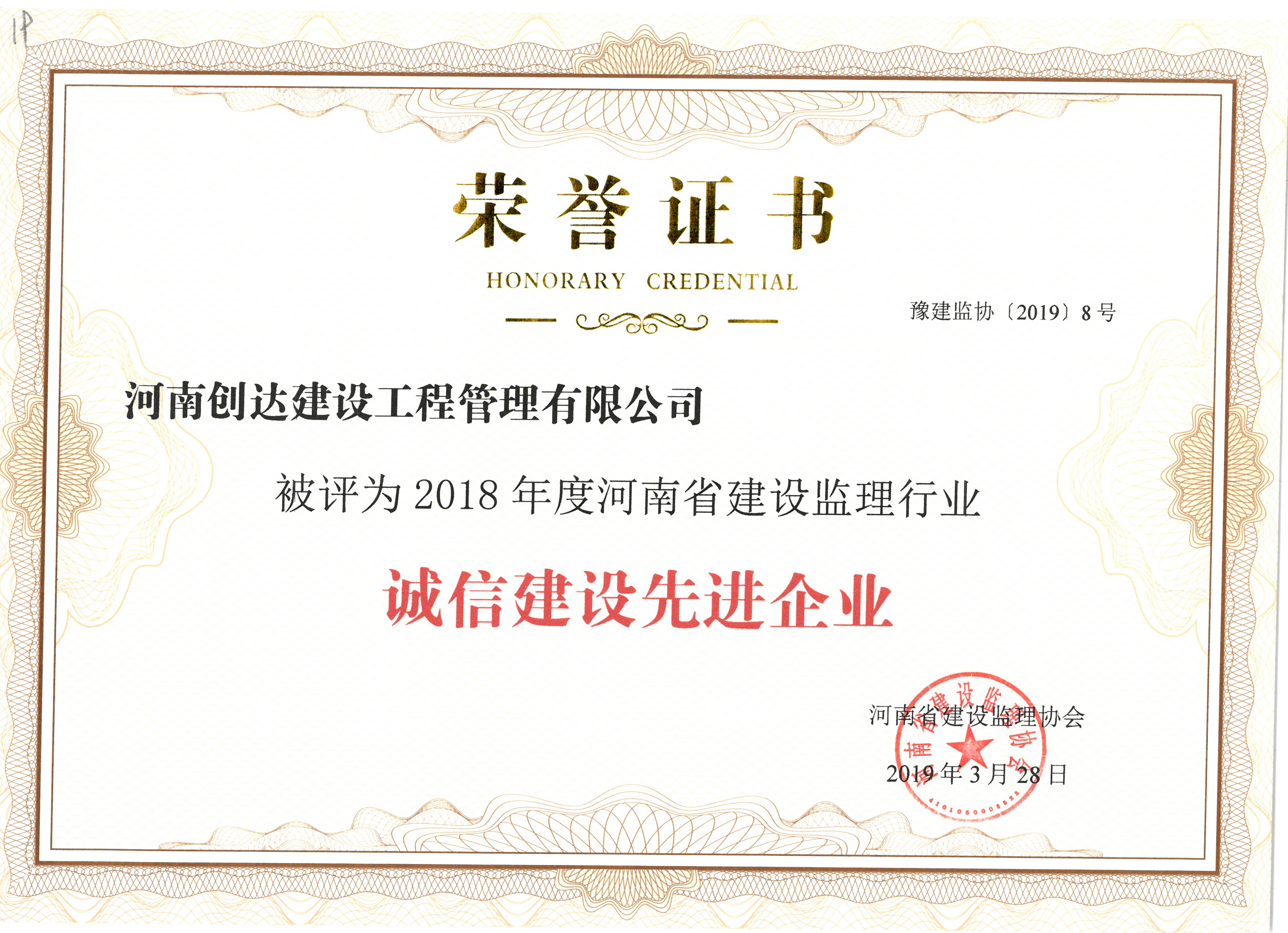 2018年度監(jiān)理行業(yè)誠信建設(shè)先進(jìn)企業(yè)